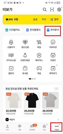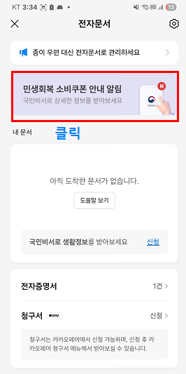 - 상단 메뉴에서 ‘전자문서’ 아이콘을 선택해요