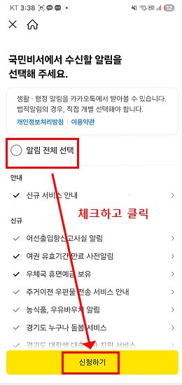 - ‘국민비서 알림서비스 신청’ 배너를 클릭해요