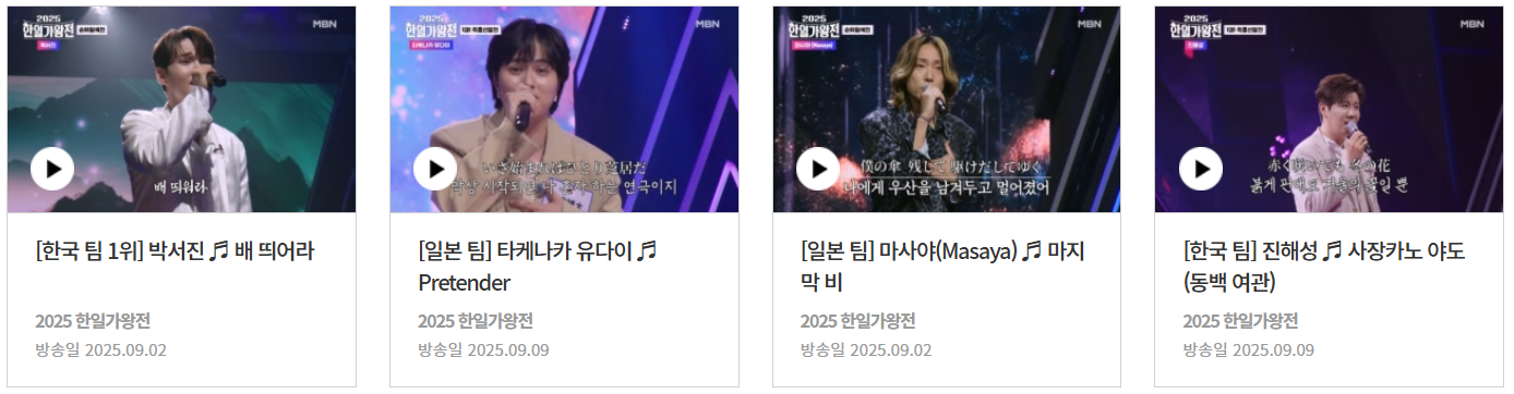 이처럼 2025 한일가왕전은 팬들의 참여가 성패를 좌우하는 프로그램입니다. 좋아하는 가수에게 힘을 실어주고 싶다면 매일 빠짐없이 투표해 주세요. 여러분의 한 표가 무대를 더욱 빛나게 만듭니다.